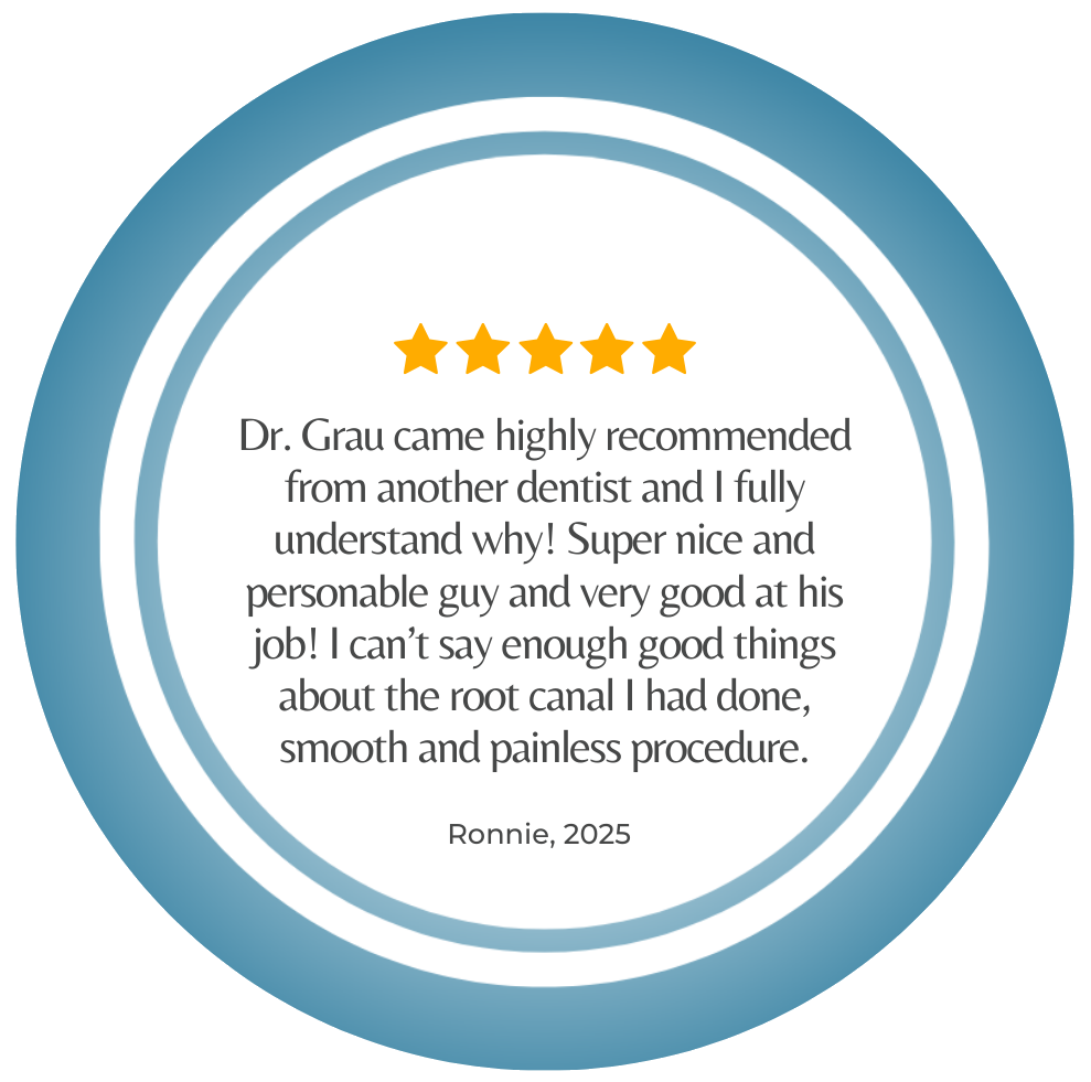 I am a retired dentist that operated my solo dental practice for 45 years. I valued my family of dental patients and proudly cared for each and every one following the cherished guideline of the Golden Rule. I recently had an endodontic procedure done by Dr. Grau. Fantastic! His standard of care, his staff,…all reminiscent of professional dental care guided by the Golden Rule! Well done Dr. Grau!